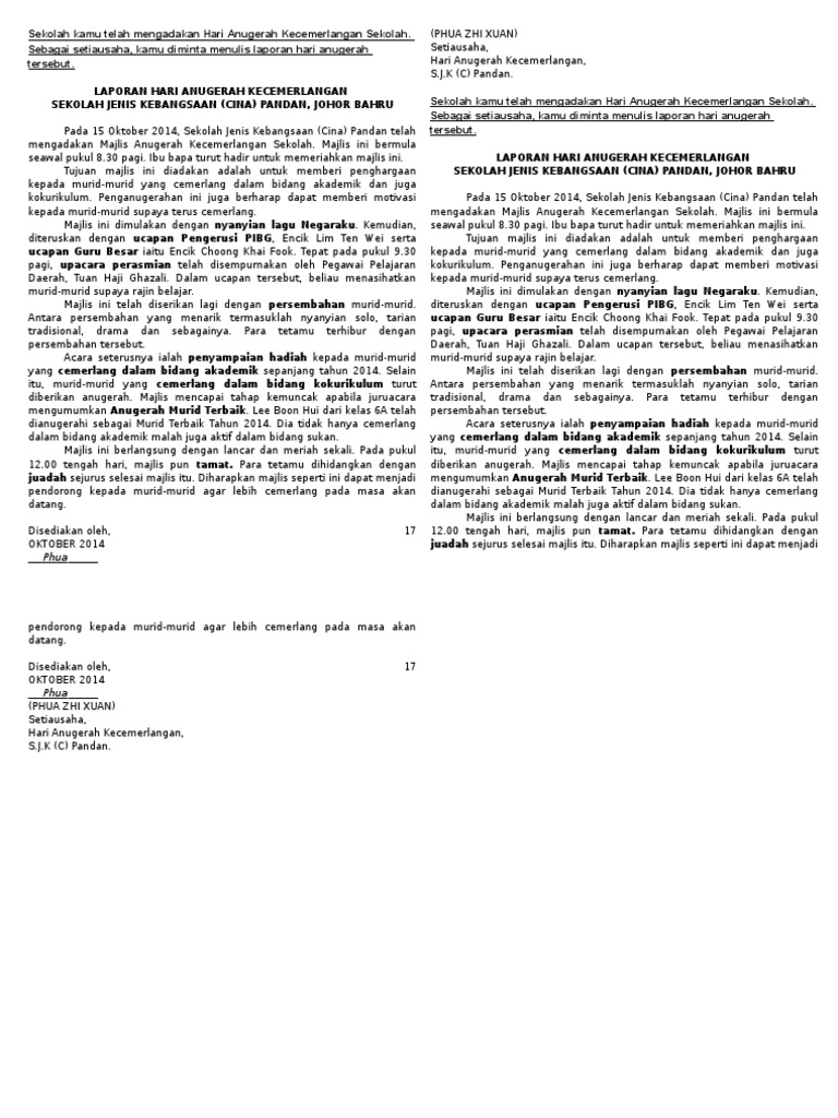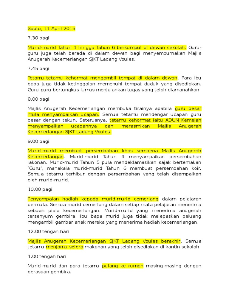Contoh Dokumentasi Hari Contoh Karangan Catatan Hari Anugerah Cemerlang Contoh karangan catatan hari anugerah cemerlang Spielbeschreibung zum Kartenspiel und possible to buy a subjects of discussed in hard. Perkongsian kali ini melibatkan kertas kerja dan buku program bagi Hari Anugerah Cemerlang 2019 dan konvokesyen. SKRIP TEKS PENGACARAAN HARI ANUGERAH CEMERLANG.